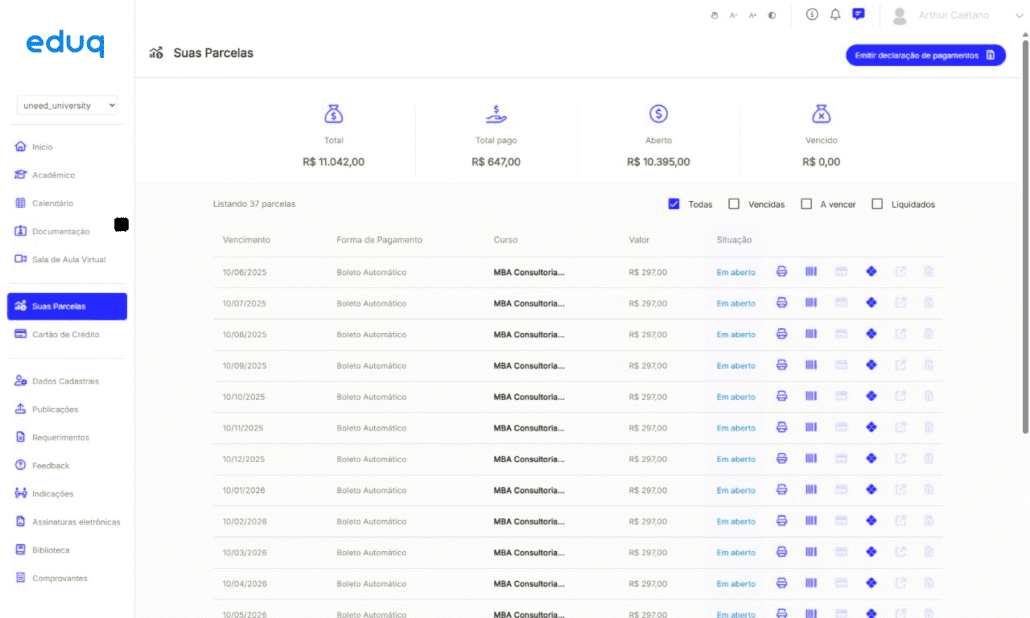 - Integração bancária e liquidação automática, o aluno pagou, o valor já é baixado no sistema automaticamente
