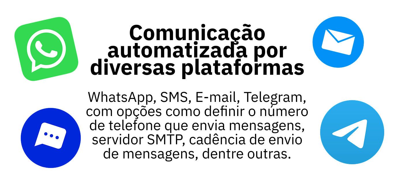 - Notificações automáticas integradas (SMS, e-mail, WhatsApp)