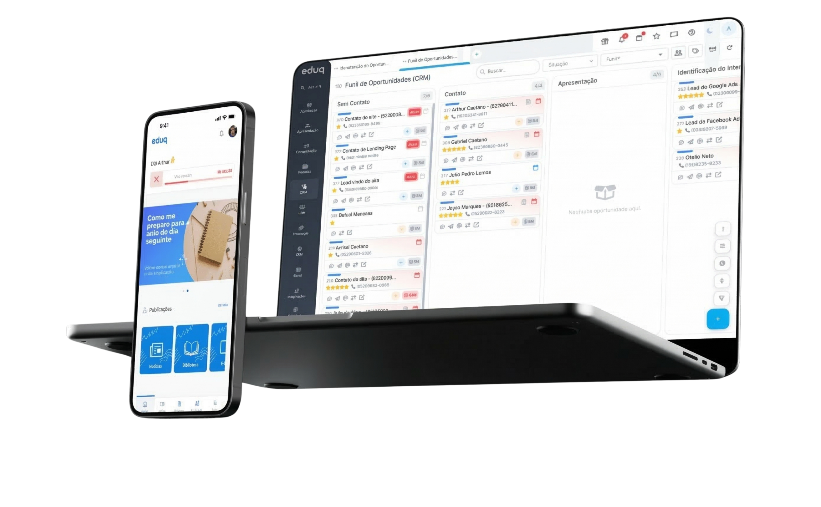 Da gestão de leads, kanban de vendas, até a emissão de certificados: o Eduq é o sistema de gestão acadêmica, CRM e financeiro mais completo para instituições de ensino superior e técnicos.